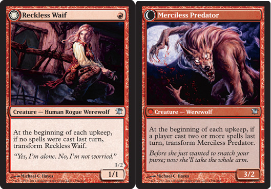 WOW! Say hello to the new Wild Nacatl of Standard! Turn 1 you play Reckless Waif, and your opponent is in a really tough spot immediatly! Do you cast a useless ponder to prevent the transformation? Do you just take the beats? I think thanks almost single-handedly to this card that Werewolves will be the Zoo deck of the format right out of the gates! Time will tell if our white splash is even necessary, but for now I'm going to keep it. Here's the new decklist: